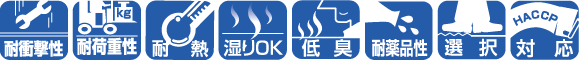 耐熱性が高いため、熱水を使う食品・化学工場の他、厨房などの床に適しています。